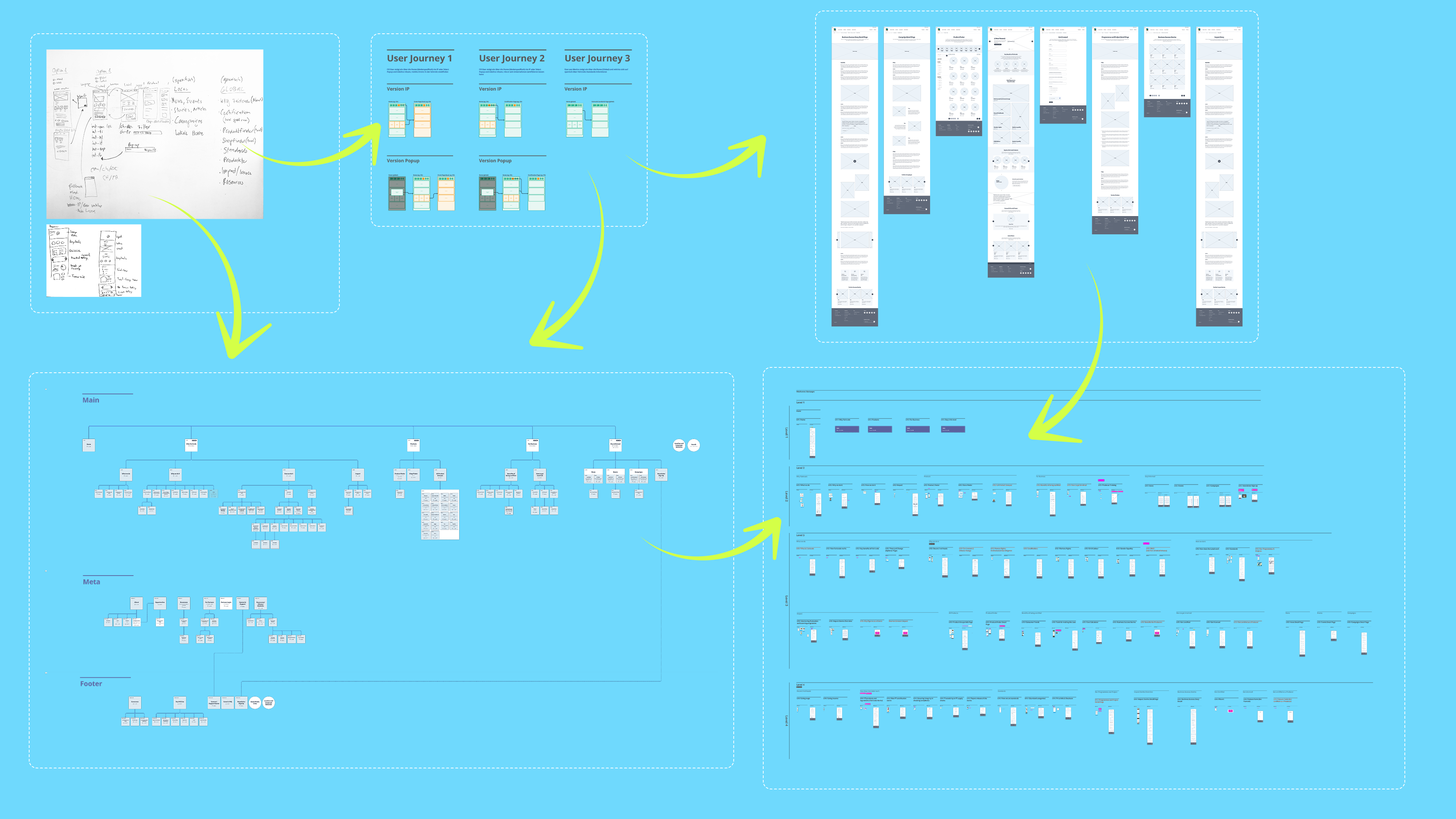 Um die komplexen Anforderungen der internationalen Märkte zu bündeln, wurden in strategischen Workshops die globalen Flows sowie die Informationsarchitektur präzisiert. Auf dieser Grundlage entwickelte ich ein umfassendes Framework aus Wireframes und modularen Templates, die als technisches Fundament in den Adobe Experience Manager überführt wurden. Die Erarbeitung dieses konsistenten Komponentensystems stellte sicher, dass die weltweiten Länderorganisationen ihre Inhalte flexibel pflegen können, ohne die Identität der globalen Marke zu gefährden.